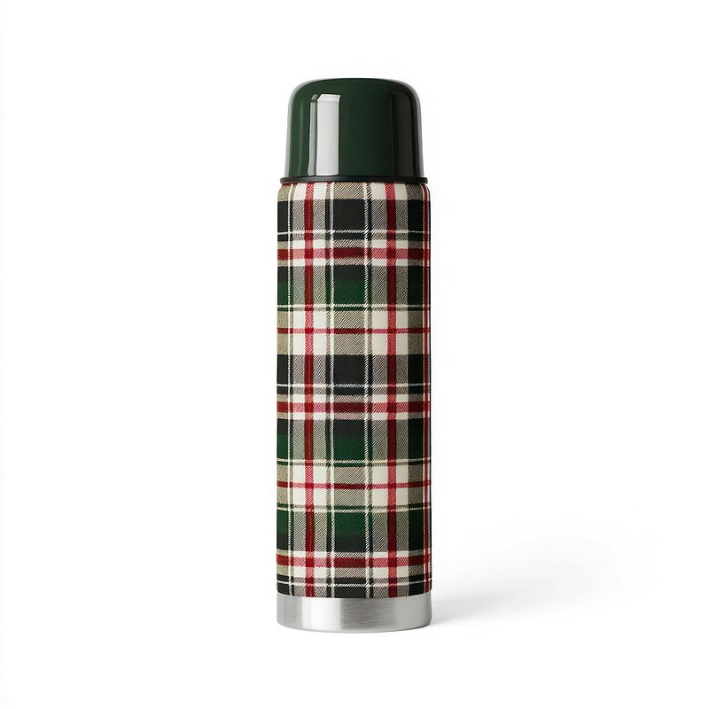 Plaid thermos with green lid. https://www.rawpixel.com/image/21104161/plaid-thermos-with-green-lidView license