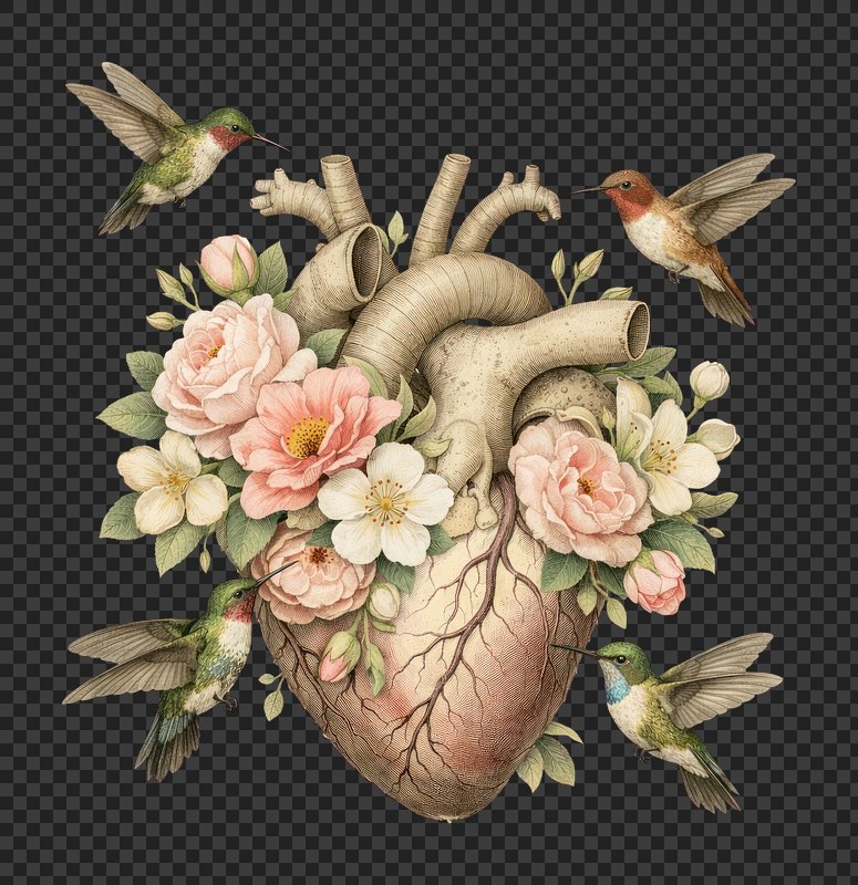 PNG Heart blossoms with hummingbirds. https://www.rawpixel.com/image/25890866/png-heart-blossoms-with-hummingbirdsView license