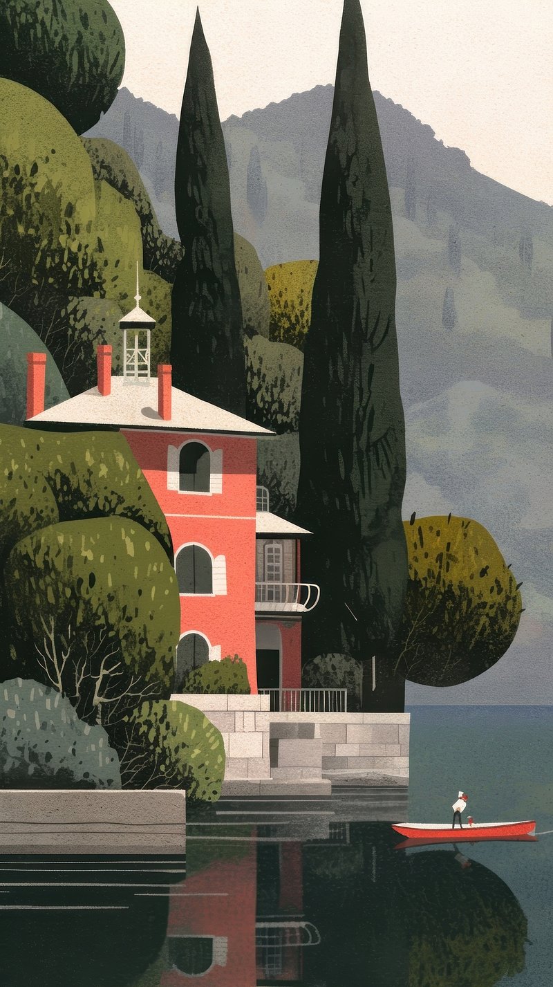 Lake Como villa illustration landscape. https://www.rawpixel.com/image/16879592/lake-como-villa-illustration-landscapeView license