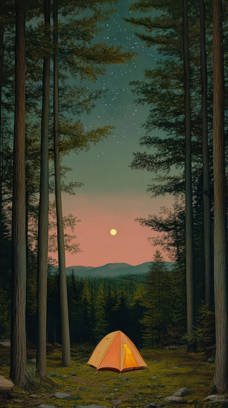 Camping in woodland night landscape wallpaper outdoors nature. https://www.rawpixel.com/image/16890744/camping-woodland-night-landscape-wallpaper-outdoors-natureView license