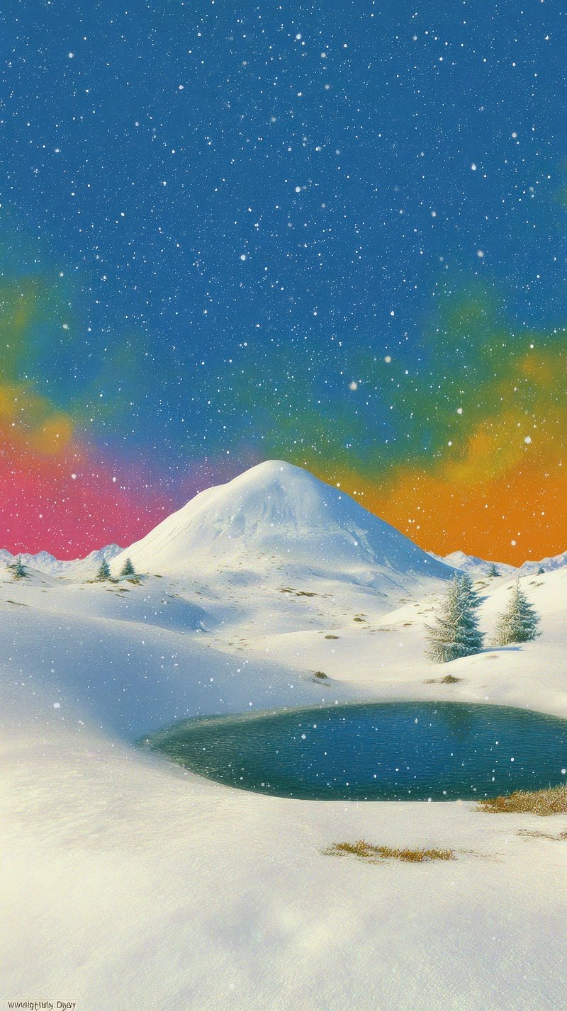 Snowy landscape under colorful sky mobile wallpaper https://www.rawpixel.com/image/25770551/snowy-landscape-under-colorful-sky-mobile-wallpaperView license
