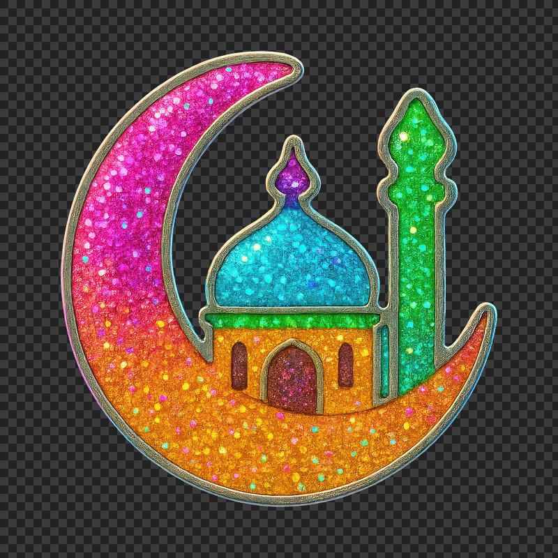 PNG Colorful mosque within crescent. https://www.rawpixel.com/image/24729827/png-colorful-mosque-within-crescentView license