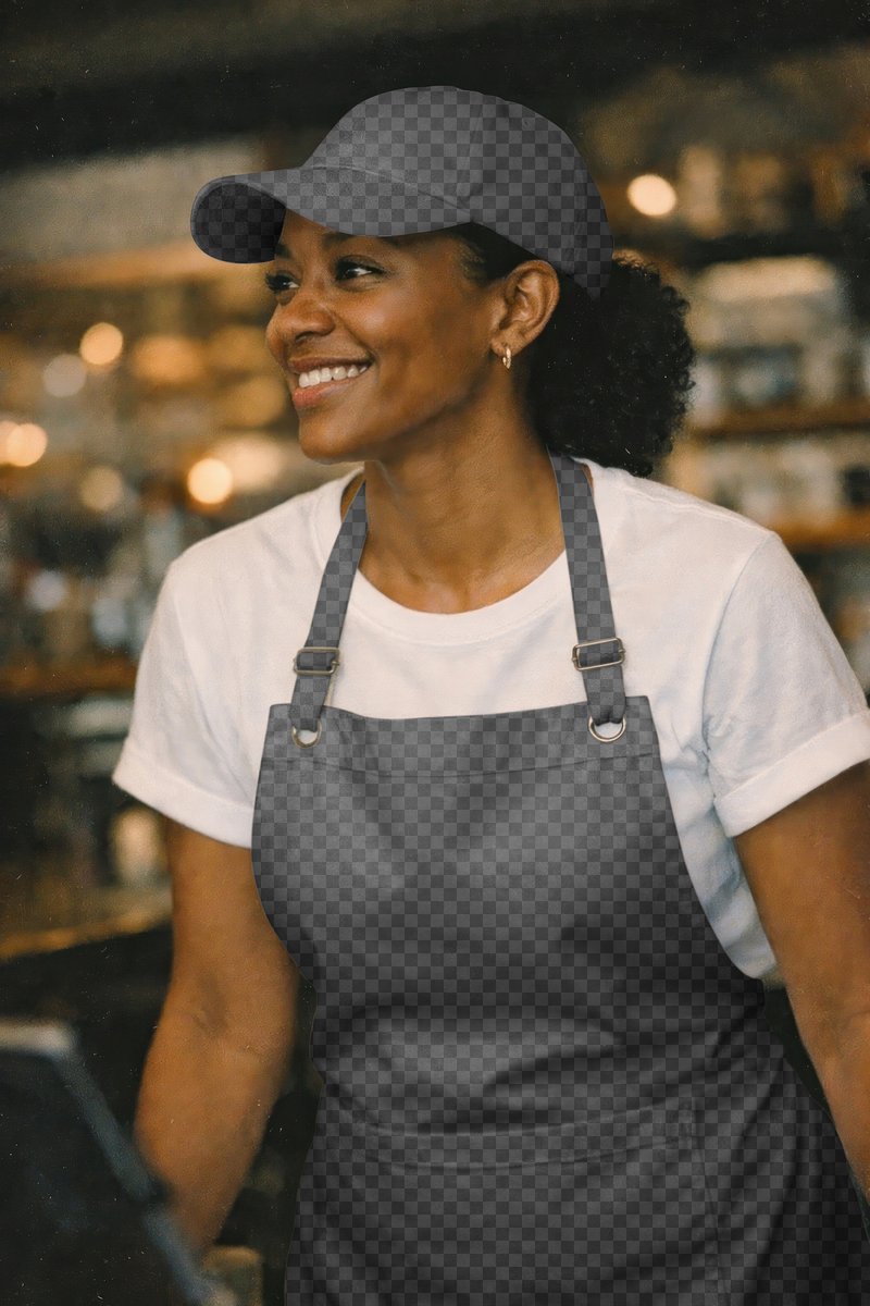 Smiling barista in cafe uniform mockup png, transparent design https://www.rawpixel.com/image/25629842/smiling-barista-cafe-uniform-mockup-png-transparent-designView license