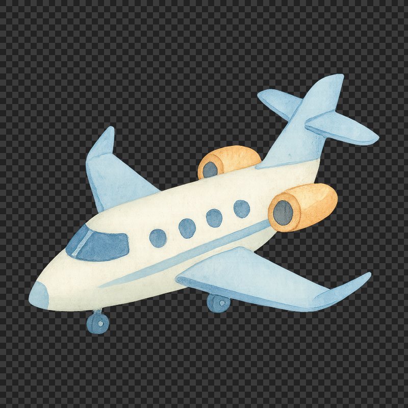 PNG Whimsical watercolor airplane illustration. https://www.rawpixel.com/image/18724711/png-whimsical-watercolor-airplane-illustrationView license