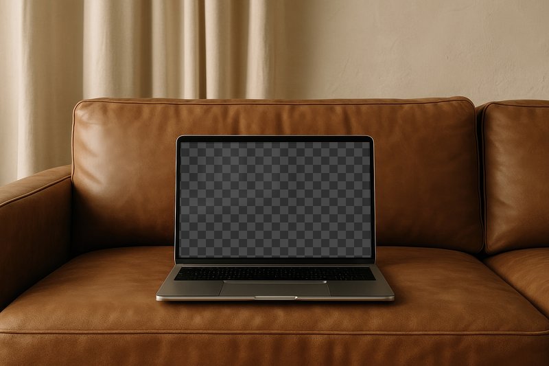 Elegant laptop mockup on sofa png, transparent design https://www.rawpixel.com/image/21310373/elegant-laptop-mockup-sofa-png-transparent-designView license