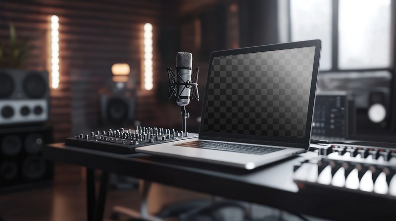 Studio setup with laptop mockup, transparent design https://www.rawpixel.com/image/21935608/studio-setup-with-laptop-mockup-transparent-designView license