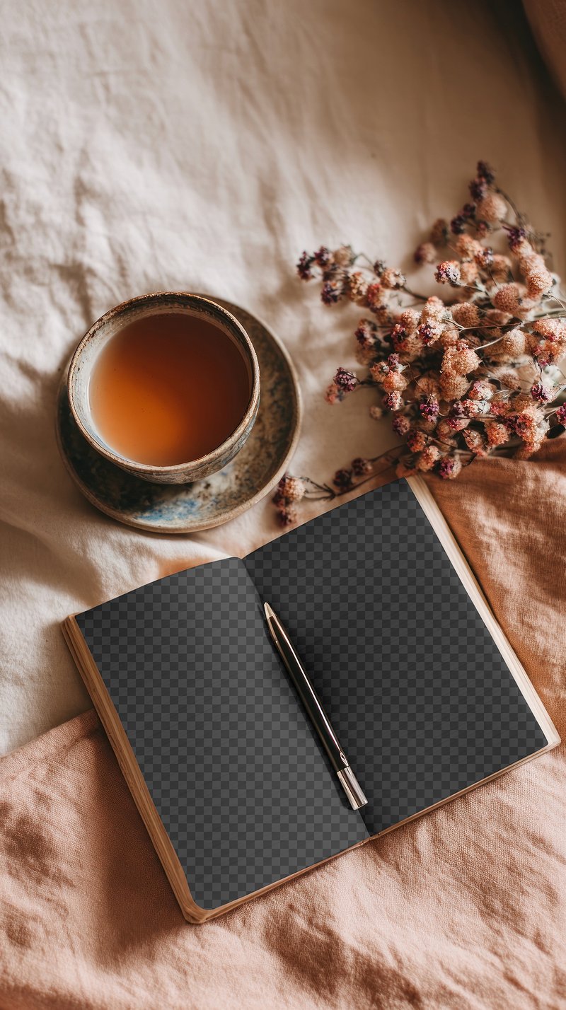 Cozy notebook mockup tea scene, transparent design https://www.rawpixel.com/image/23527329/cozy-notebook-mockup-tea-scene-transparent-designView license