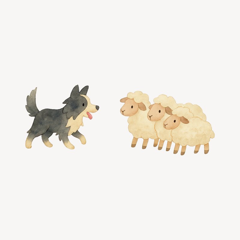 Playful dog herding fluffy sheep. https://www.rawpixel.com/image/19444688/playful-dog-herding-fluffy-sheepView license