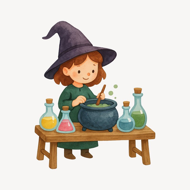 Whimsical witch brews potions. https://www.rawpixel.com/image/19457653/whimsical-witch-brews-potionsView license