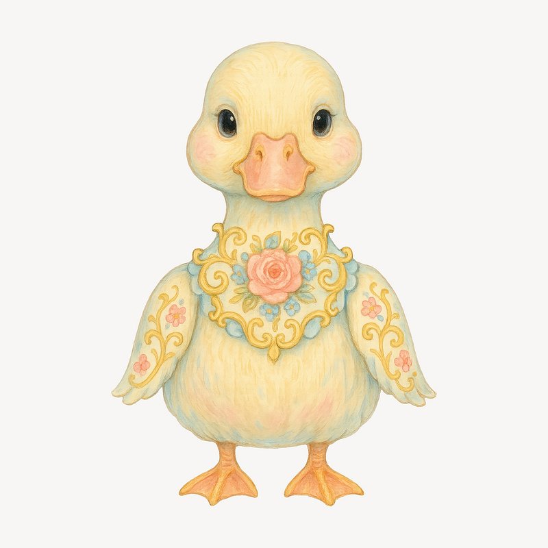 Charming duckling in floral attire. https://www.rawpixel.com/image/19065608/charming-duckling-floral-attireView license