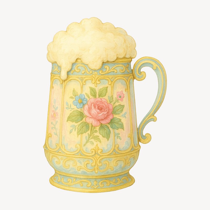Vintage floral beer mug illustration. https://www.rawpixel.com/image/19066318/vintage-floral-beer-mug-illustrationView license