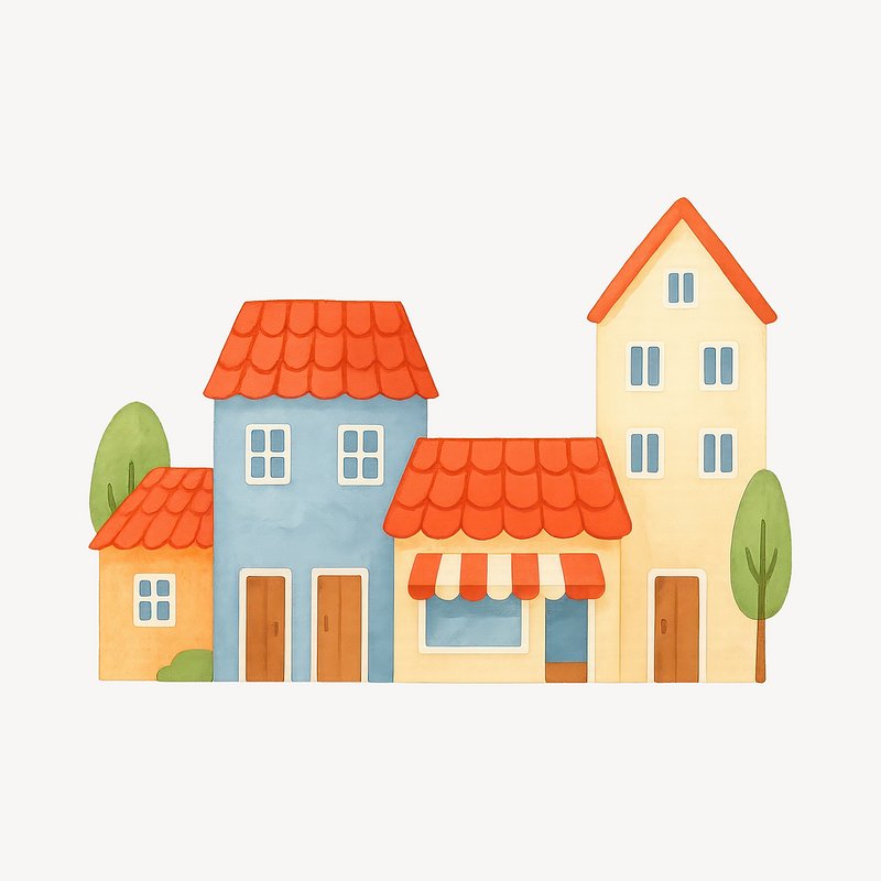 Charming village houses illustration. https://www.rawpixel.com/image/19340843/charming-village-houses-illustrationView license