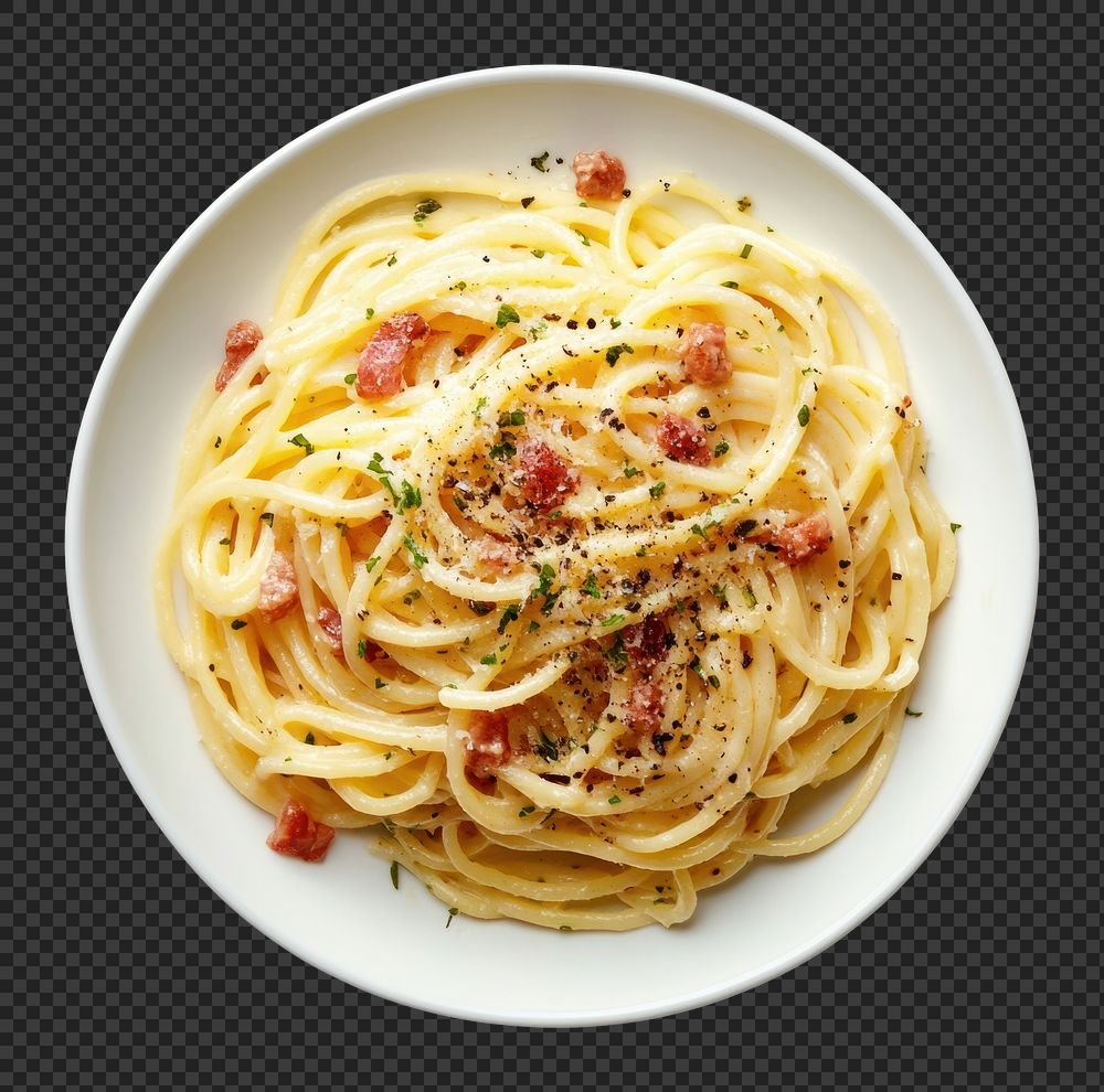 PNG Spaghetti Carbonara on a plate spaghetti carbonara pasta. https://www.rawpixel.com/image/17470516/png-spaghetti-carbonara-plate-spaghetti-carbonara-pastaView license