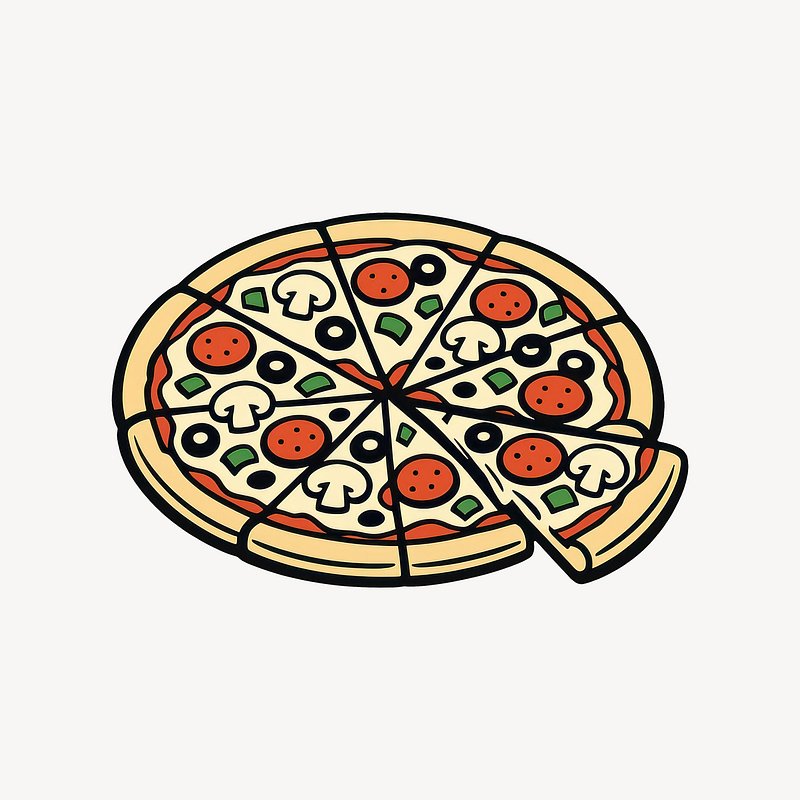 Colorful pizza illustration with slices. https://www.rawpixel.com/image/25232775/colorful-pizza-illustration-with-slicesView license