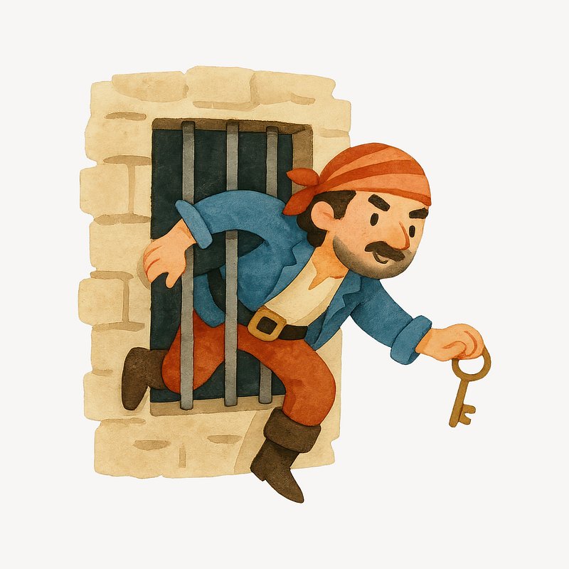 Pirate escaping with golden key. https://www.rawpixel.com/image/20746405/pirate-escaping-with-golden-keyView license