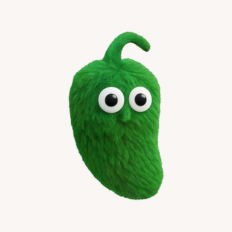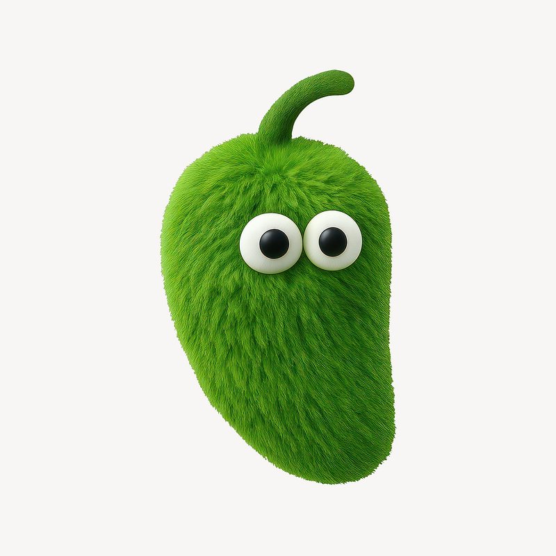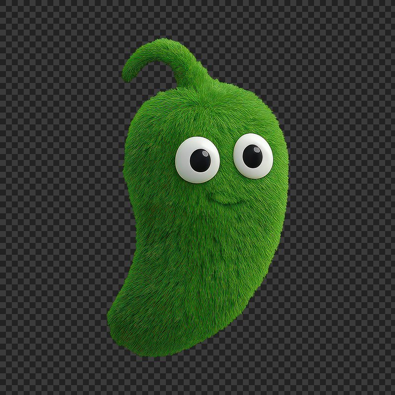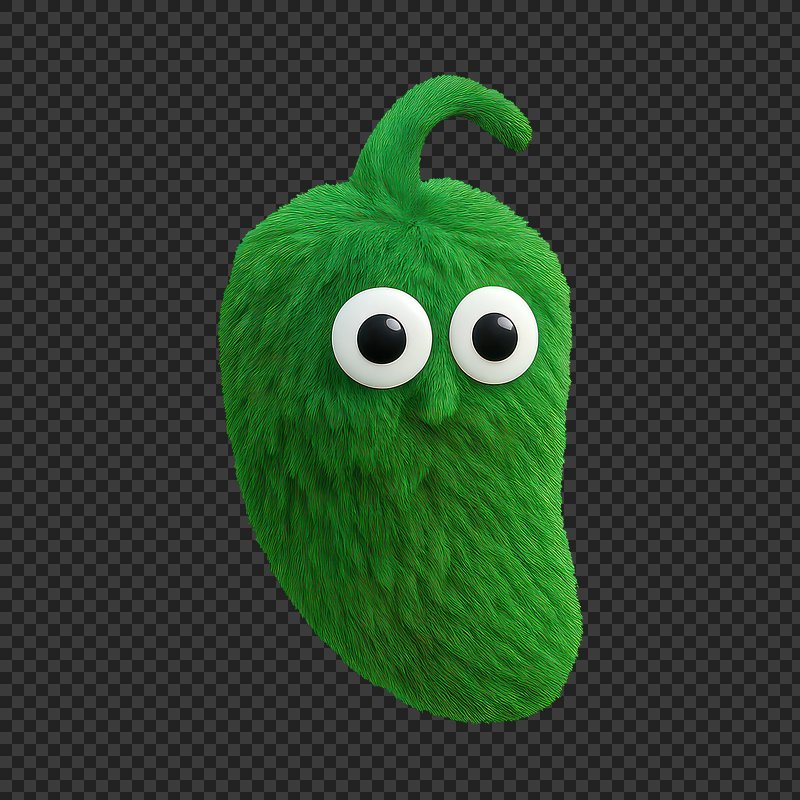Furry green cartoon pepper. https://www.rawpixel.com/image/24711450/furry-green-cartoon-pepperView license