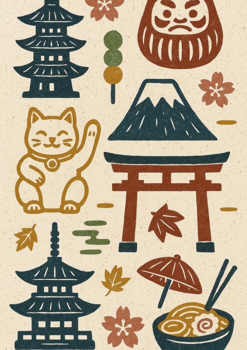 Japanese cultural symbols illustrated https://www.rawpixel.com/image/22638408/japanese-cultural-symbols-illustratedView license
