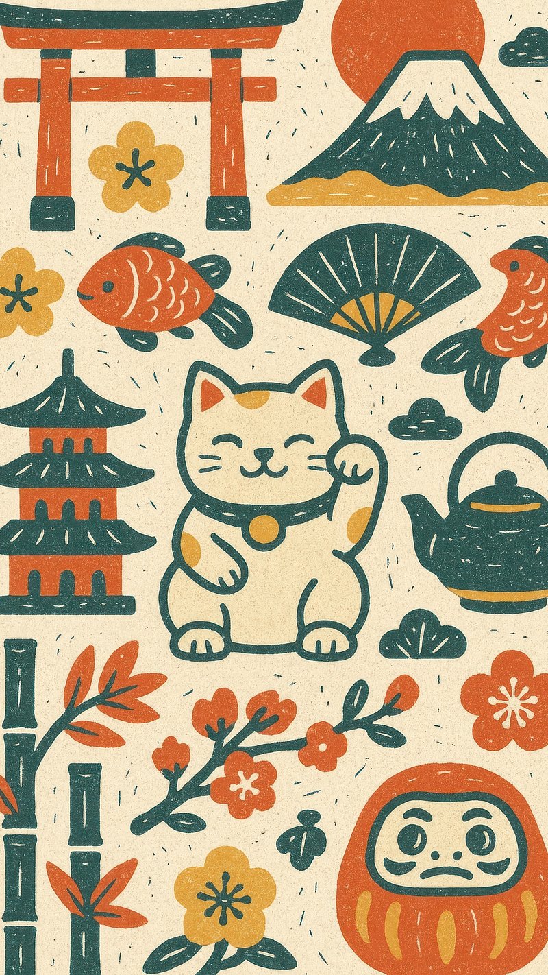 Japanese cultural symbols mobile wallpaper https://www.rawpixel.com/image/21207522/japanese-cultural-symbols-mobile-wallpaperView license