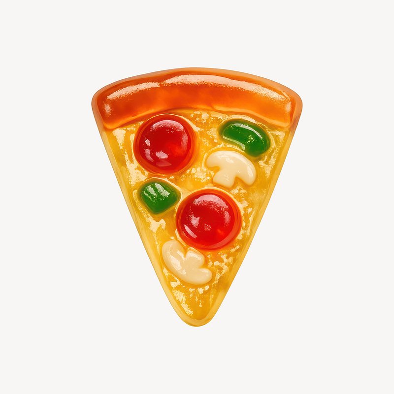 Colorful gummy pizza slice illustration. https://www.rawpixel.com/image/25428267/colorful-gummy-pizza-slice-illustrationView license