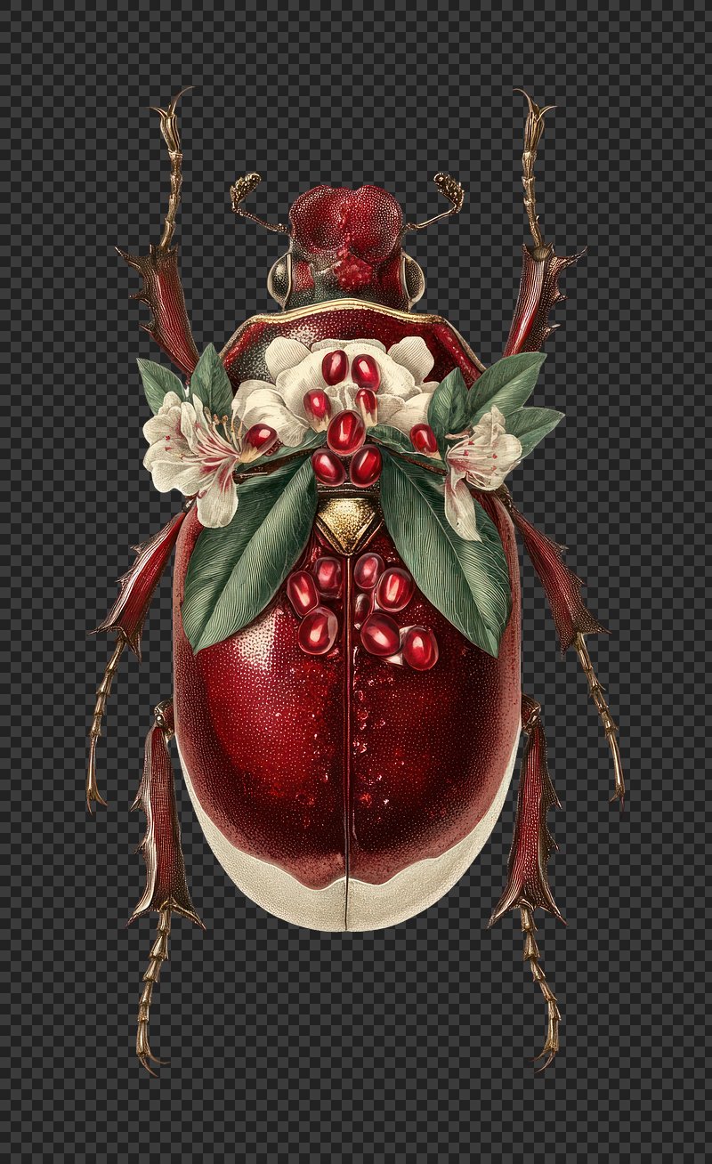PNG Illustration pomegranate botanical beetle. https://www.rawpixel.com/image/21910749/png-illustration-pomegranate-botanical-beetleView license