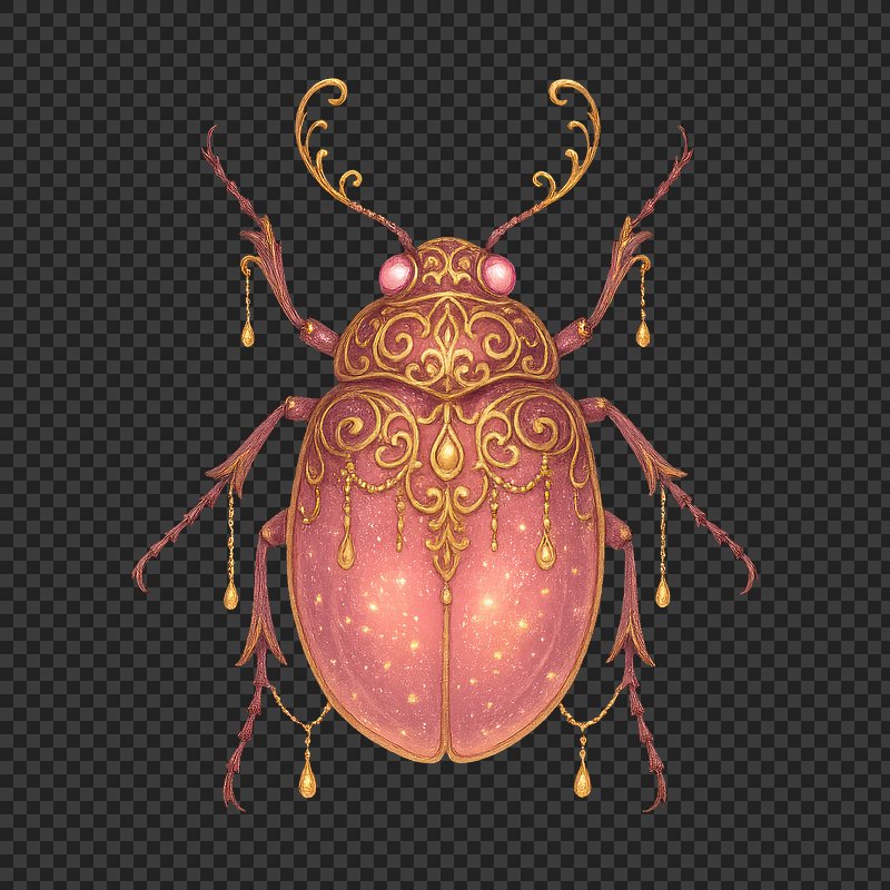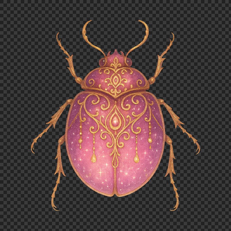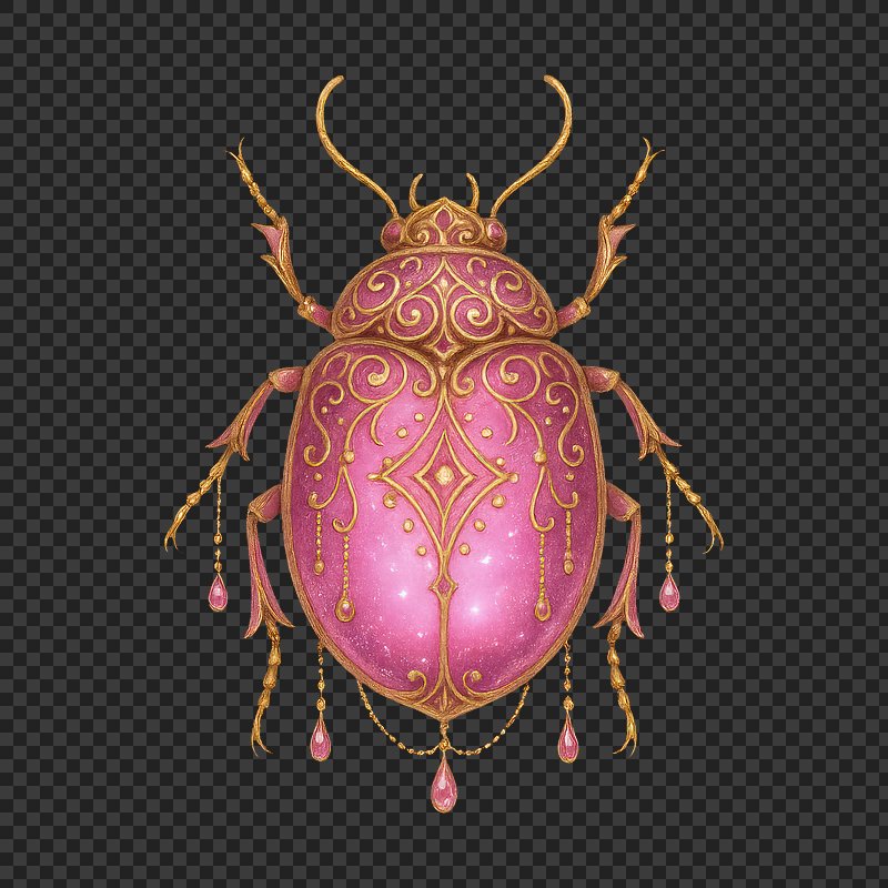 PNG Ornate golden pink beetle illustration. https://www.rawpixel.com/image/23994155/png-ornate-golden-pink-beetle-illustrationView license