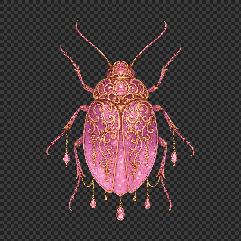 PNG Ornate pink jeweled beetle illustration. https://www.rawpixel.com/image/23992127/png-ornate-pink-jeweled-beetle-illustrationView license