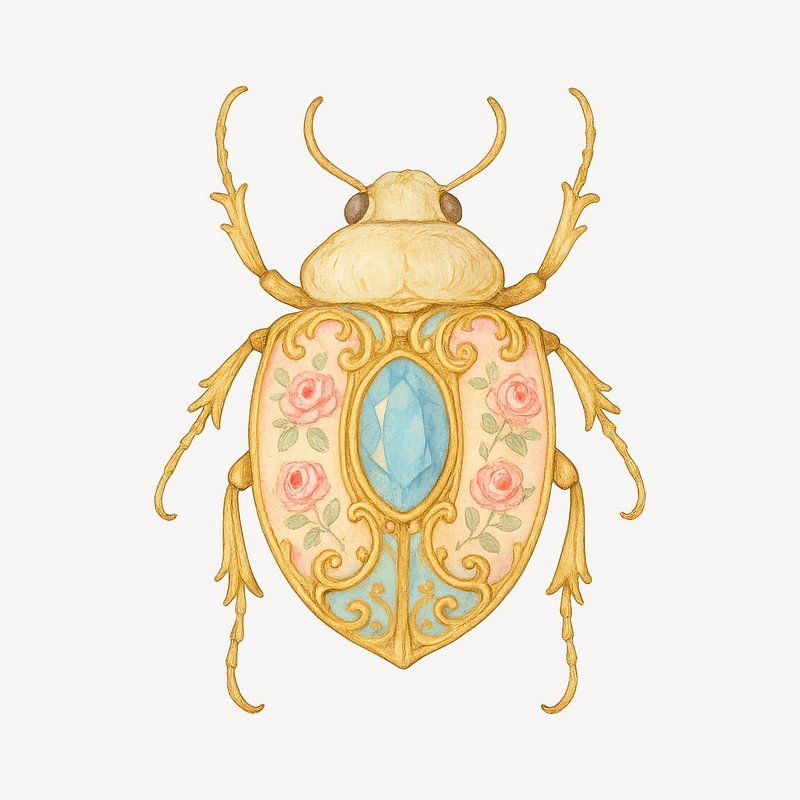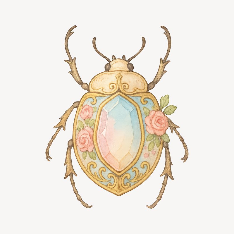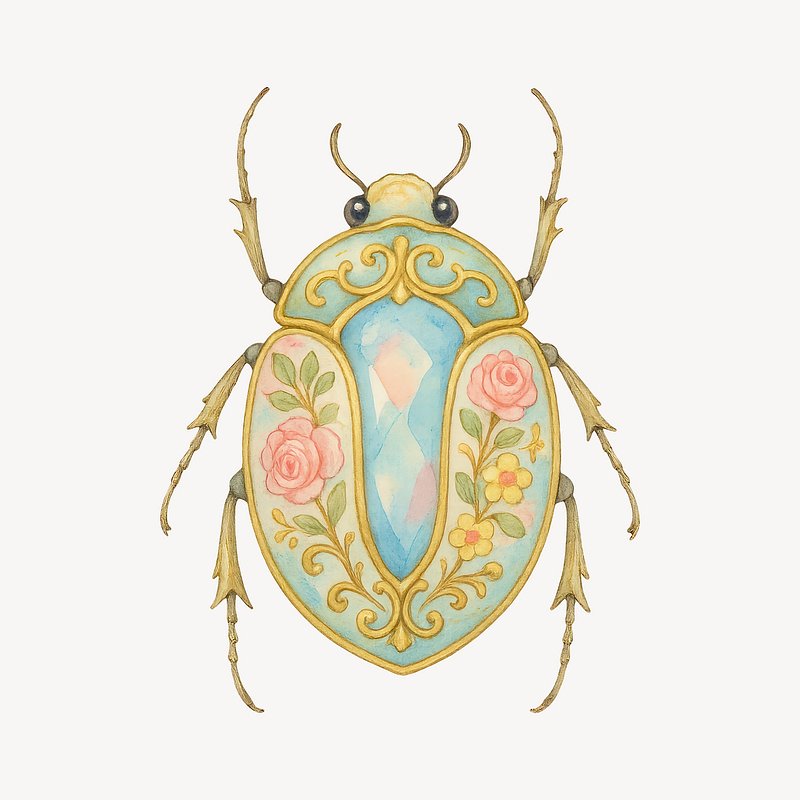 Pastel jewel-encrusted beetle illustration. https://www.rawpixel.com/image/23725504/pastel-jewel-encrusted-beetle-illustrationView license