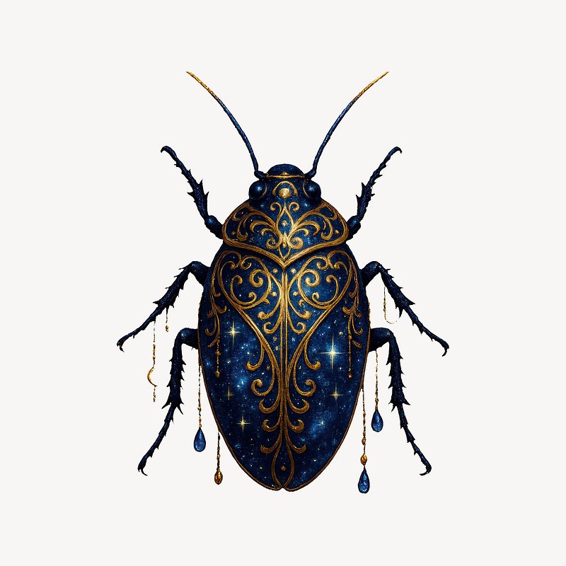 Ornate celestial beetle illustration https://www.rawpixel.com/image/21429443/ornate-celestial-beetle-illustrationView license