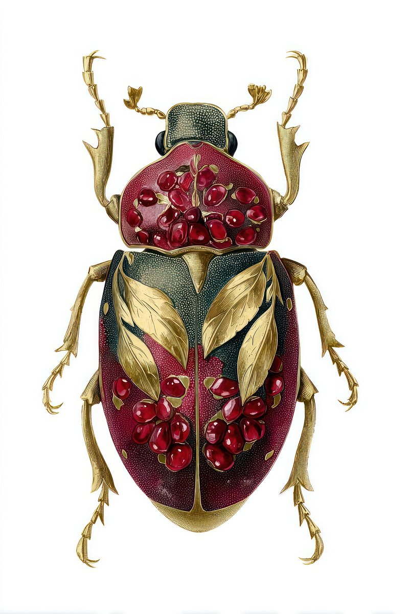 Illustration pomegranate botanical beetle. https://www.rawpixel.com/image/21494201/illustration-pomegranate-botanical-beetleView license