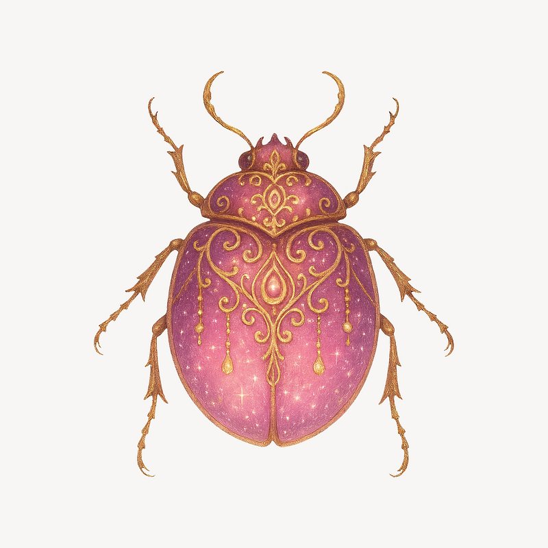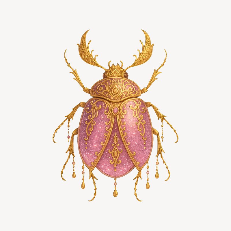 Ornate golden pink beetle illustration. https://www.rawpixel.com/image/24083393/ornate-golden-pink-beetle-illustrationView license