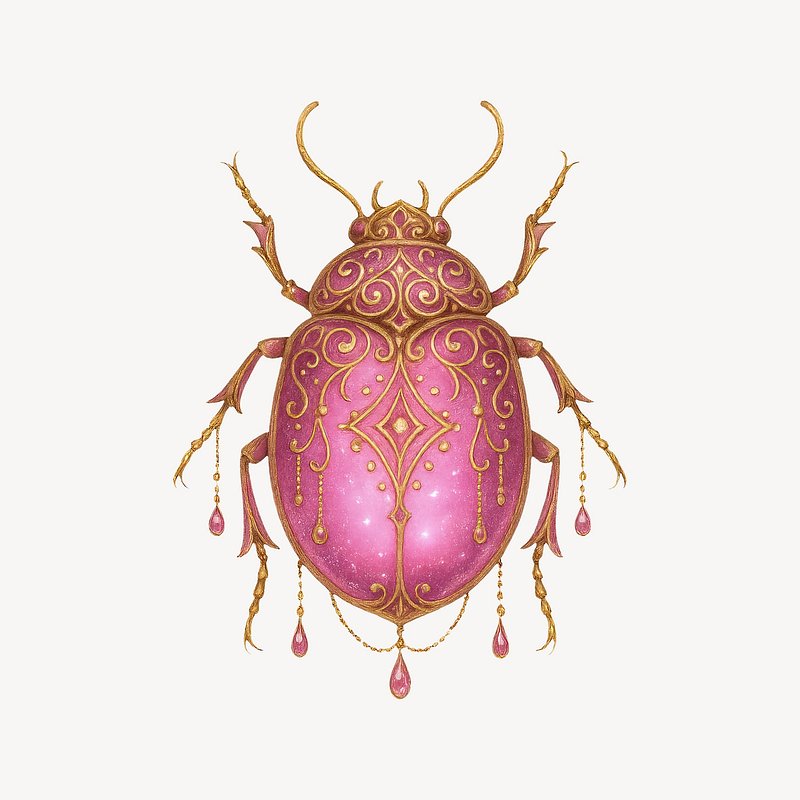 Ornate pink jeweled beetle illustration. https://www.rawpixel.com/image/24086345/ornate-pink-jeweled-beetle-illustrationView license
