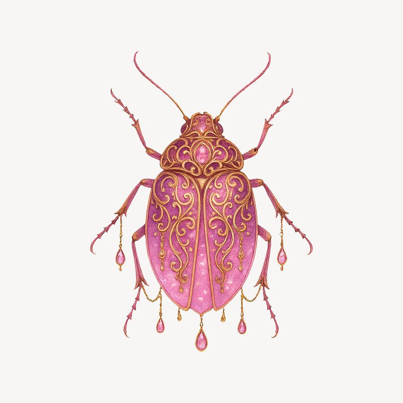 Ornate pink beetle illustration https://www.rawpixel.com/image/24086541/ornate-pink-beetle-illustrationView license