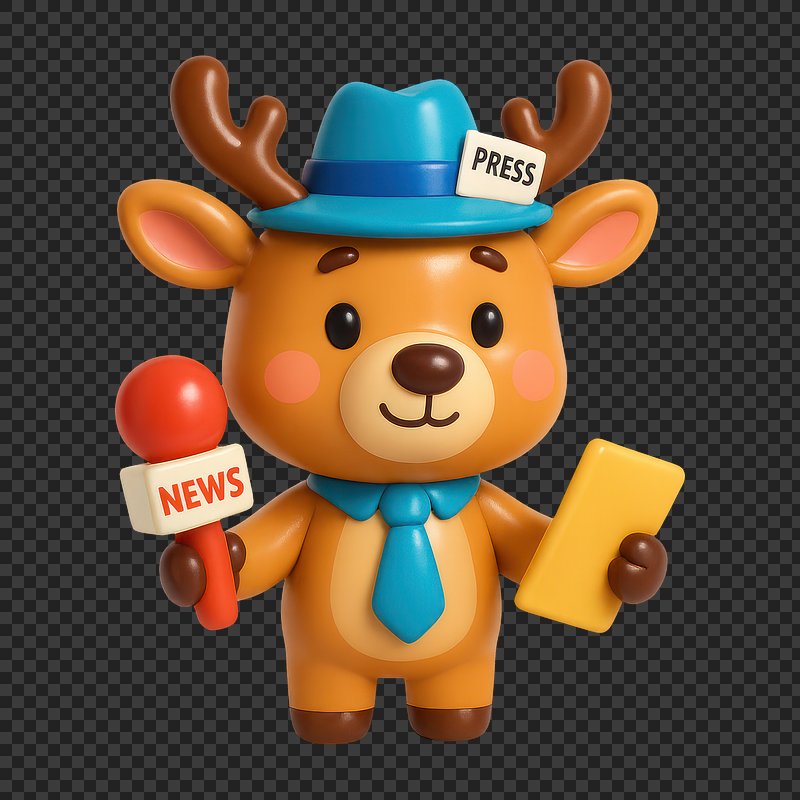 PNG Cute cartoon deer journalist illustration. https://www.rawpixel.com/image/17973961/png-cute-cartoon-deer-journalist-illustrationView license
