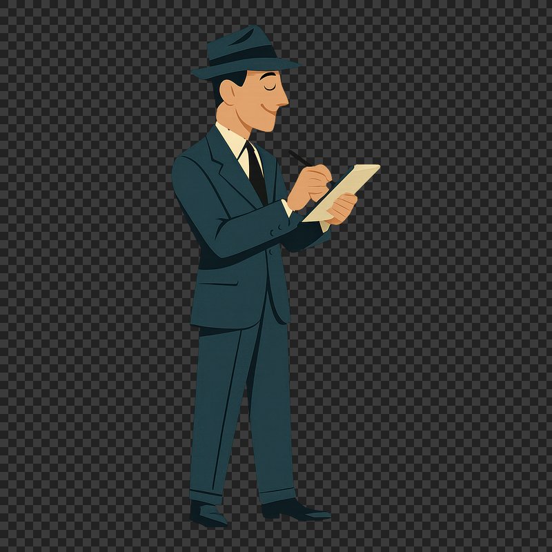 PNG Retro detective writing notes https://www.rawpixel.com/image/18797764/png-retro-detective-writing-notesView license