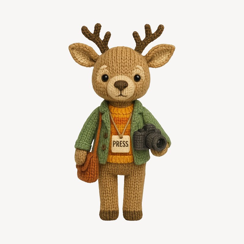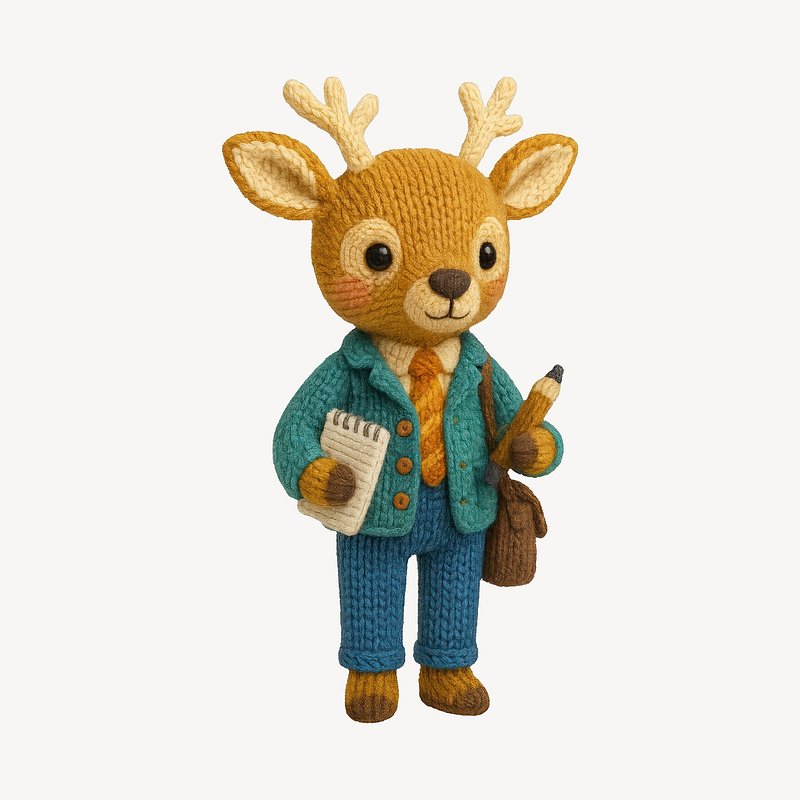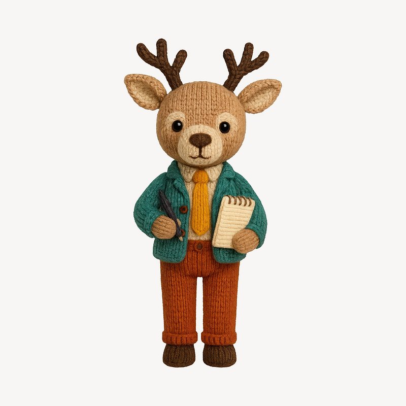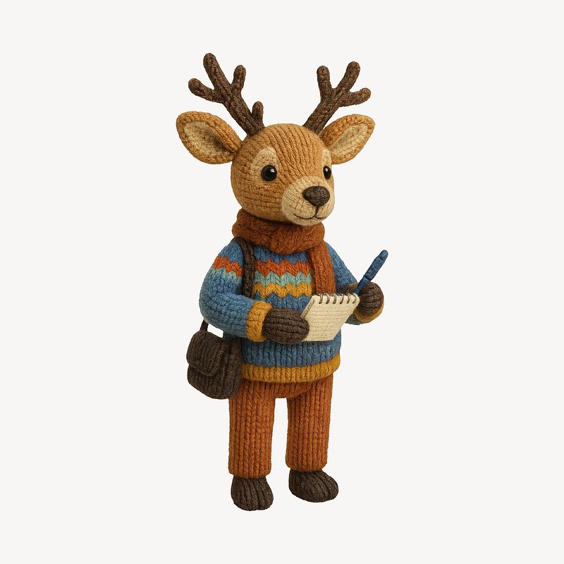 Cute knitted deer journalist figure. https://www.rawpixel.com/image/24535547/cute-knitted-deer-journalist-figureView license
