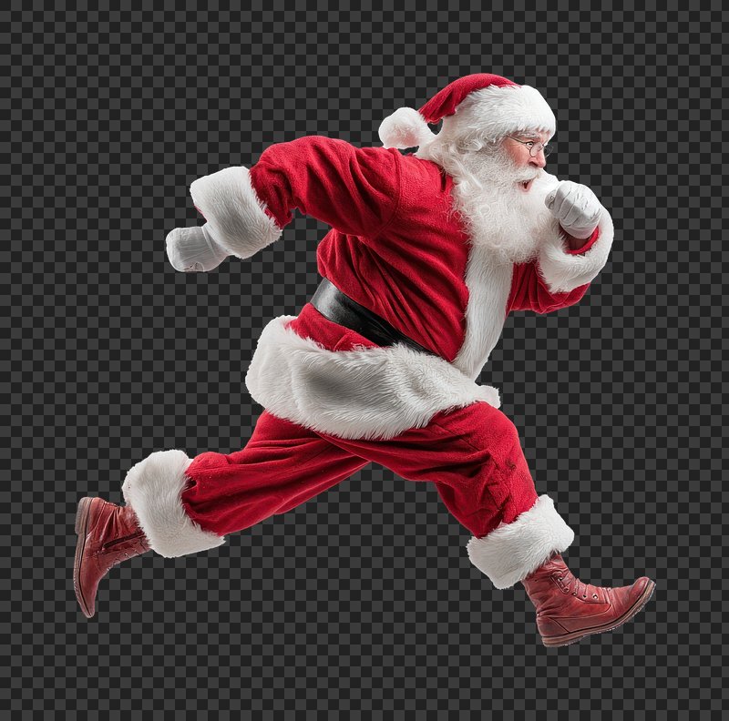 PNG Energetic Santa running joyfully. https://www.rawpixel.com/image/24022370/png-energetic-santa-running-joyfullyView license
