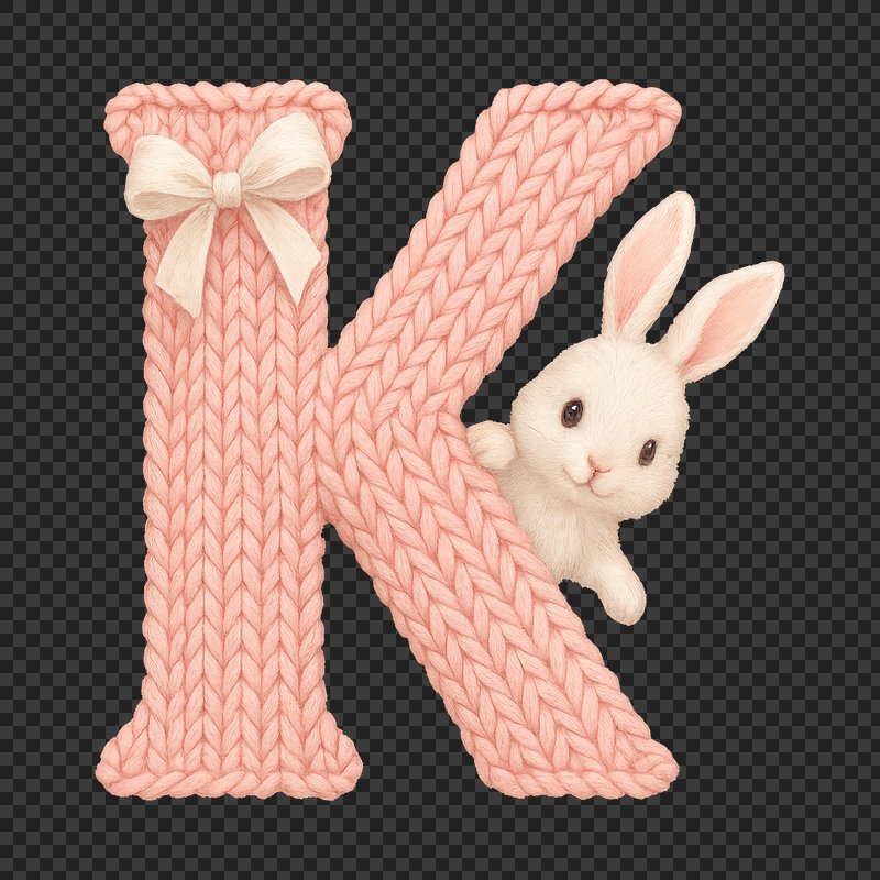 PNG Knitted letter K rabbit https://www.rawpixel.com/image/24006368/png-knitted-letter-rabbitView license