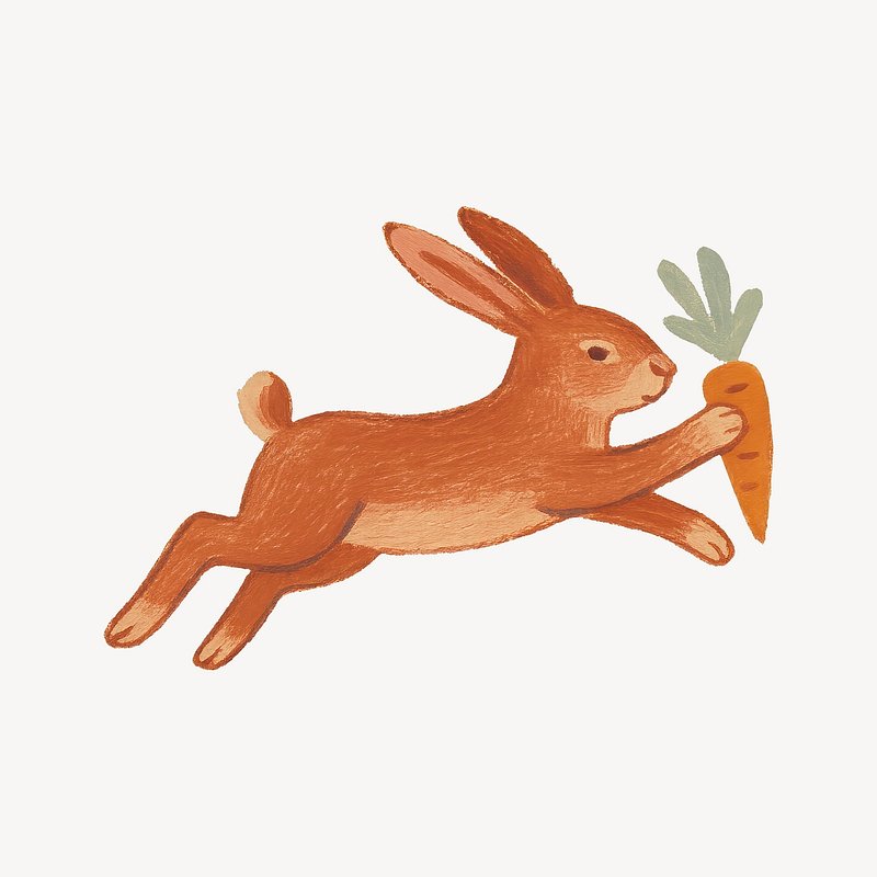 Whimsical rabbit with carrot https://www.rawpixel.com/image/24854630/whimsical-rabbit-with-carrotView license