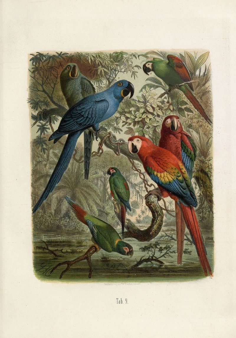 Macaws: Glaucous, Hyacinthine and Severe Macaw from Monographie des Perroquets by Anton Reichenow (1874–1941). https://www.rawpixel.com/image/16594300/image-background-jungle-animalFree Image from public domain license