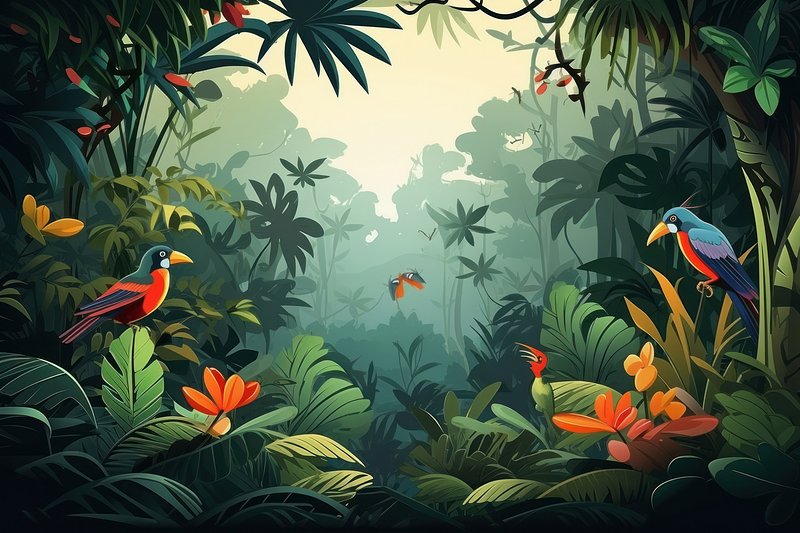 Cartoon illustration of forest wildlife https://www.rawpixel.com/image/400618/tropical-floral-pattered-backgroundView license