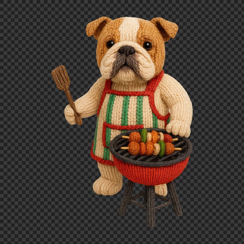 PNG Knitted bulldog grilling kebabs. https://www.rawpixel.com/image/24440638/png-knitted-bulldog-grilling-kebabsView license