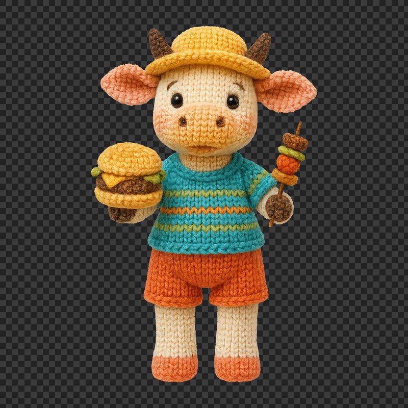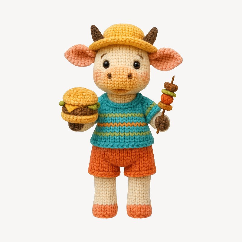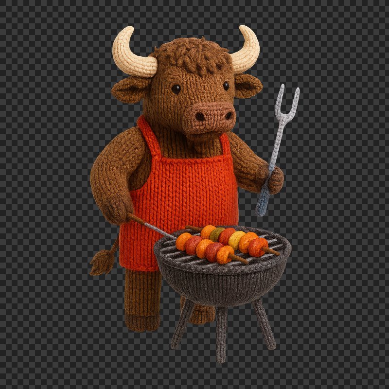 PNG Knitted bull grilling kebabs https://www.rawpixel.com/image/24445781/png-knitted-bull-grilling-kebabsView license