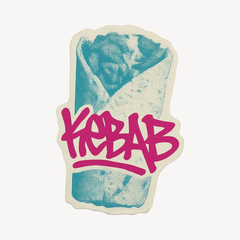 Retro graffiti-style kebab illustration. https://www.rawpixel.com/image/24650679/retro-graffiti-style-kebab-illustrationView license