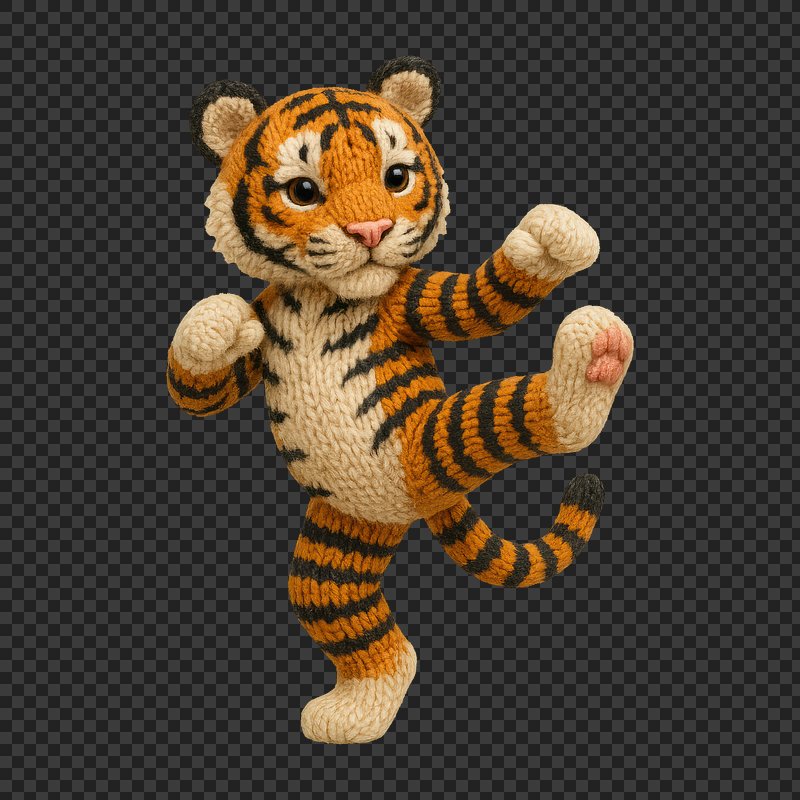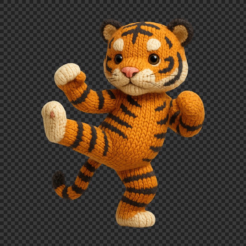 PNG Cute knitted tiger practicing karate. https://www.rawpixel.com/image/24440728/png-cute-knitted-tiger-practicing-karateView license