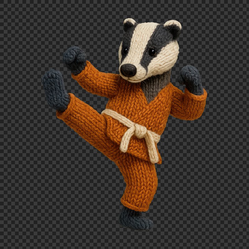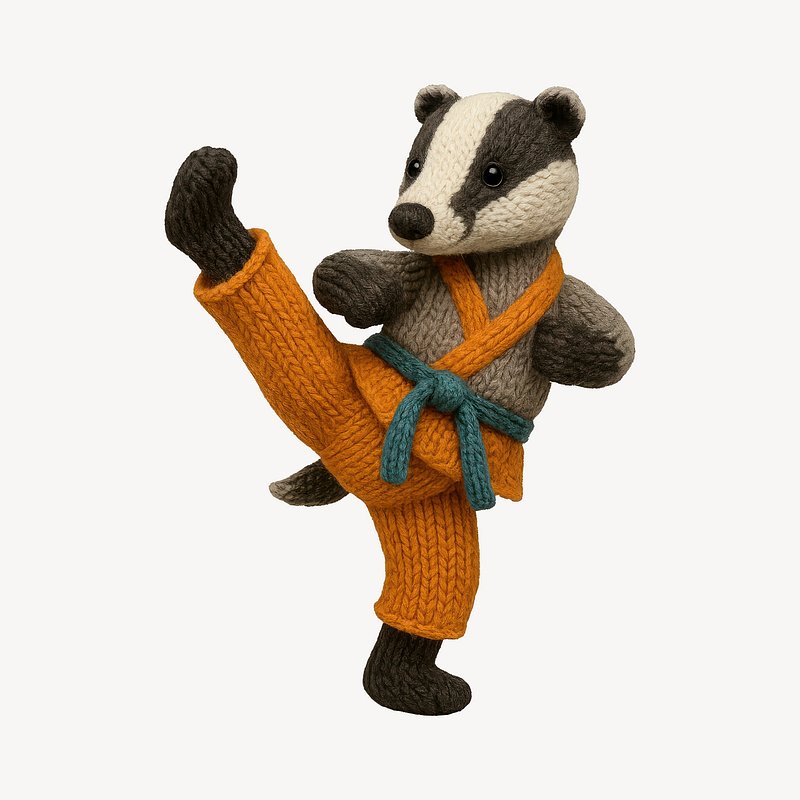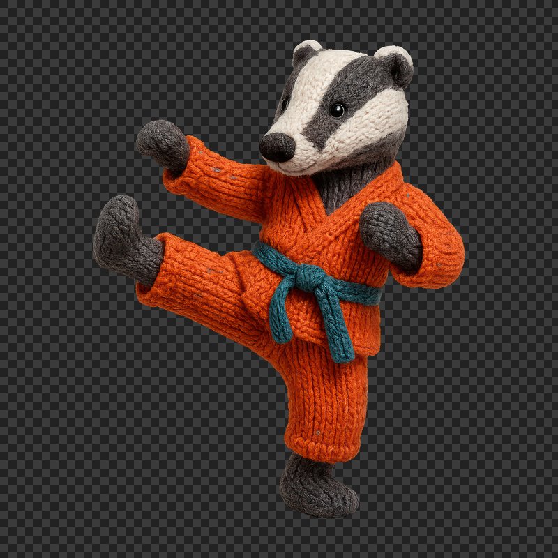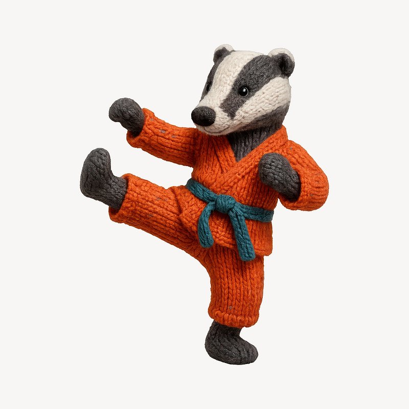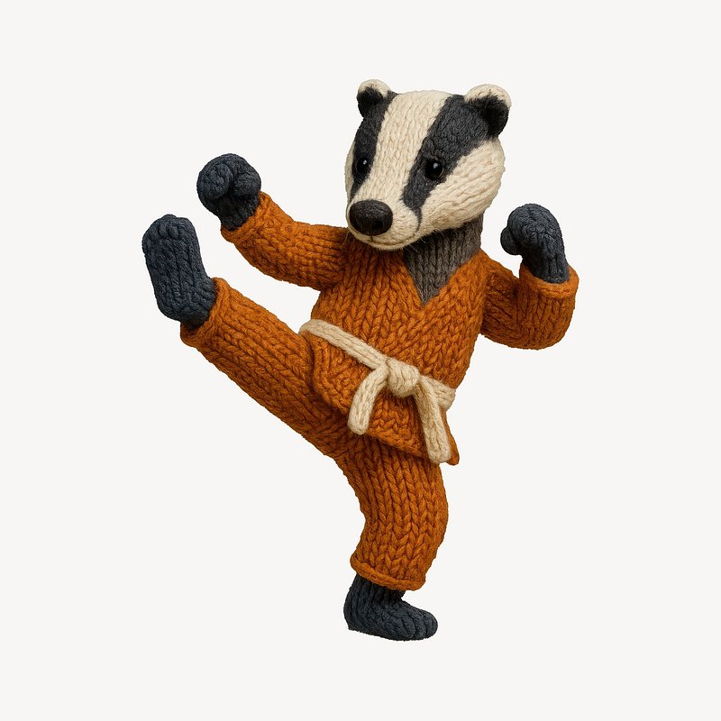 Knitted badger practicing karate. https://www.rawpixel.com/image/24531929/knitted-badger-practicing-karateView license