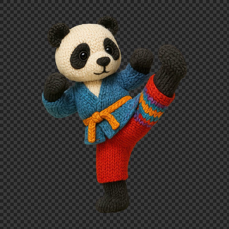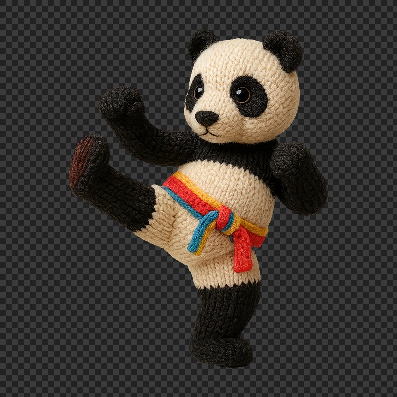 PNG Knitted panda practicing karate moves. https://www.rawpixel.com/image/24474006/png-knitted-panda-practicing-karate-movesView license