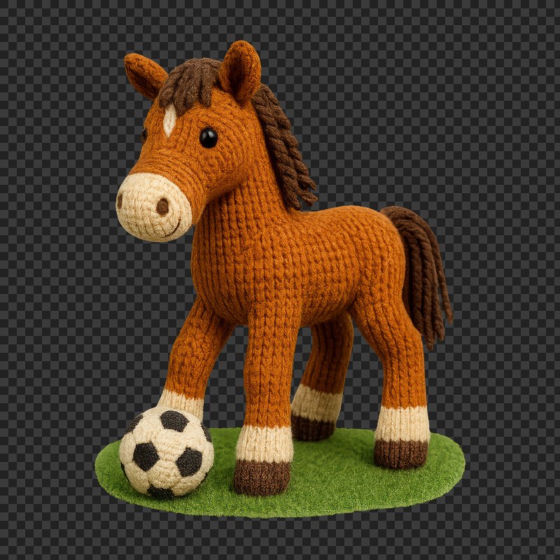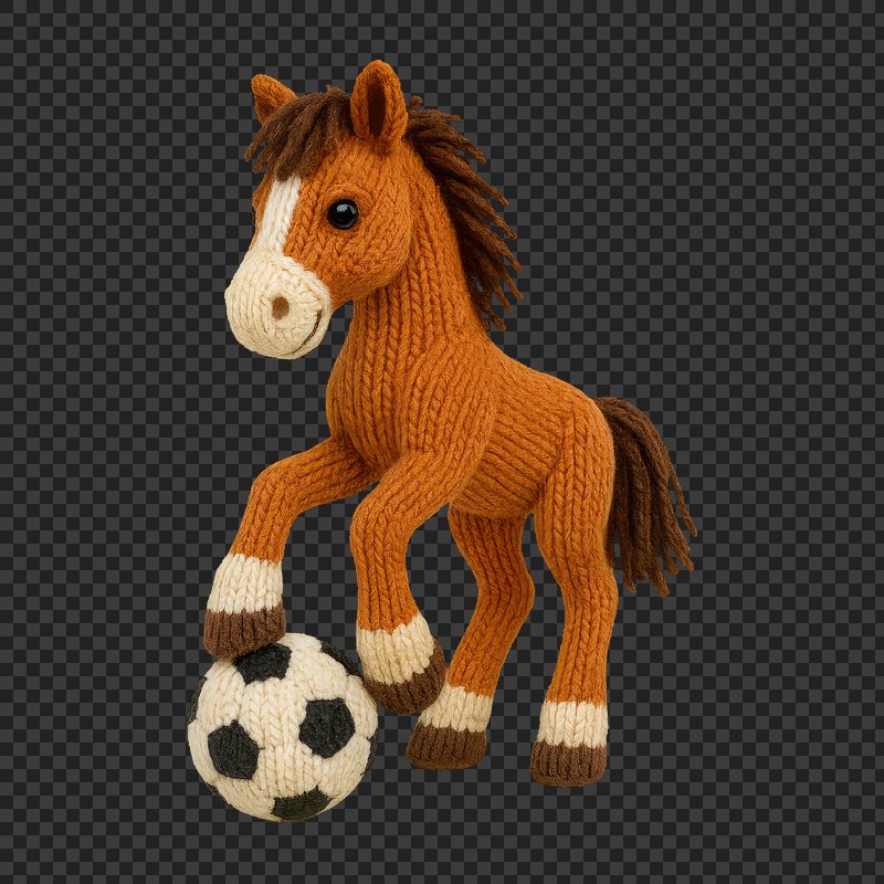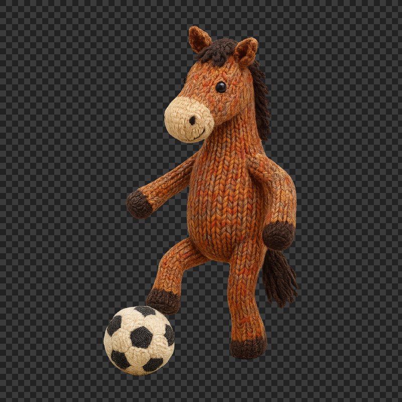 PNG Knitted horse with soccer ball https://www.rawpixel.com/image/24478101/png-knitted-horse-with-soccer-ballView license