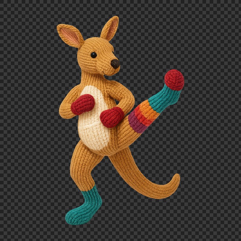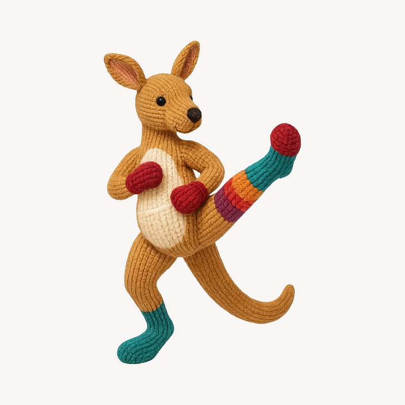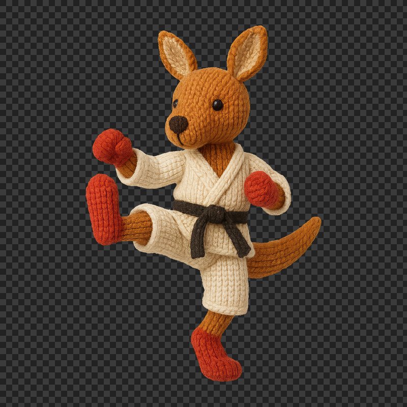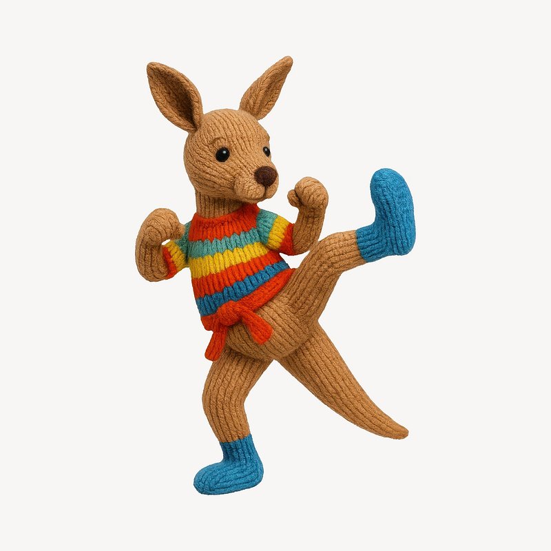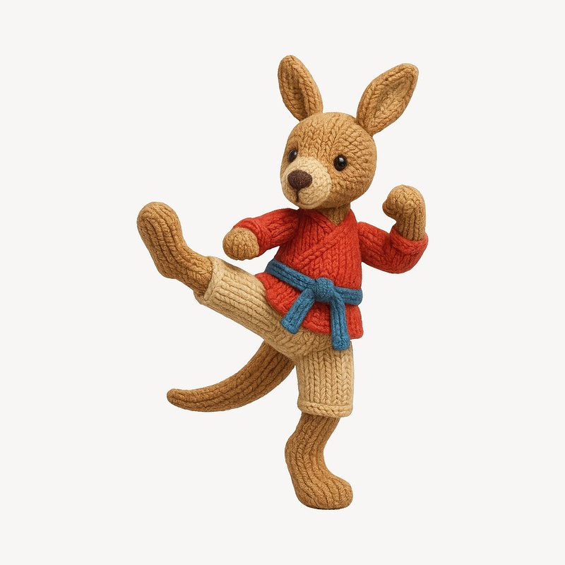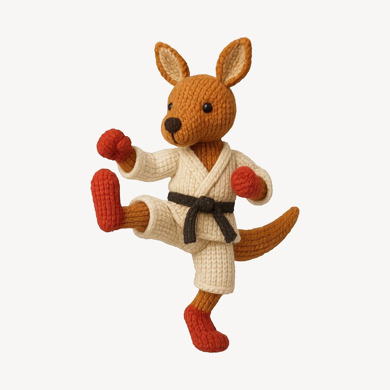 Knitted kangaroo practicing karate. https://www.rawpixel.com/image/24606694/knitted-kangaroo-practicing-karateView license