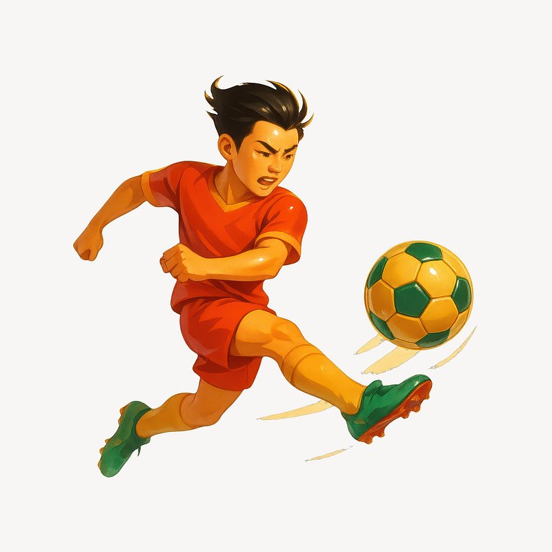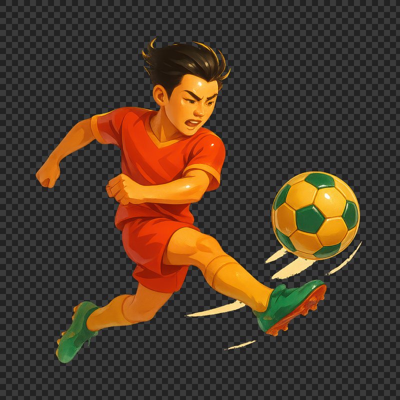PNG Cartoon soccer player kicking ball. https://www.rawpixel.com/image/24942249/png-cartoon-soccer-player-kicking-ballView license