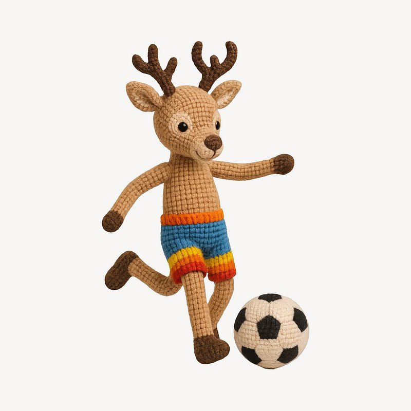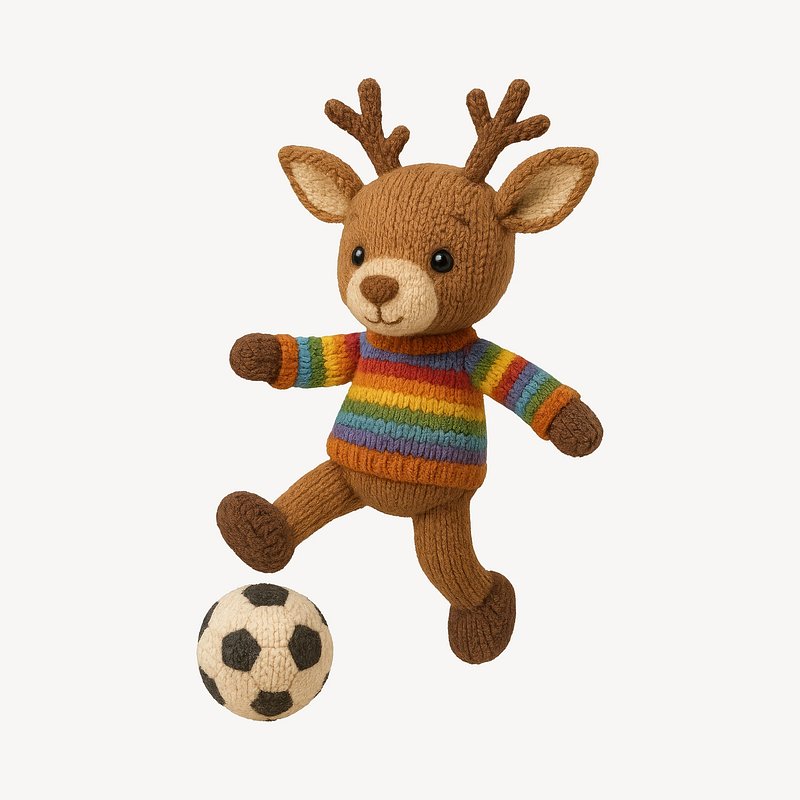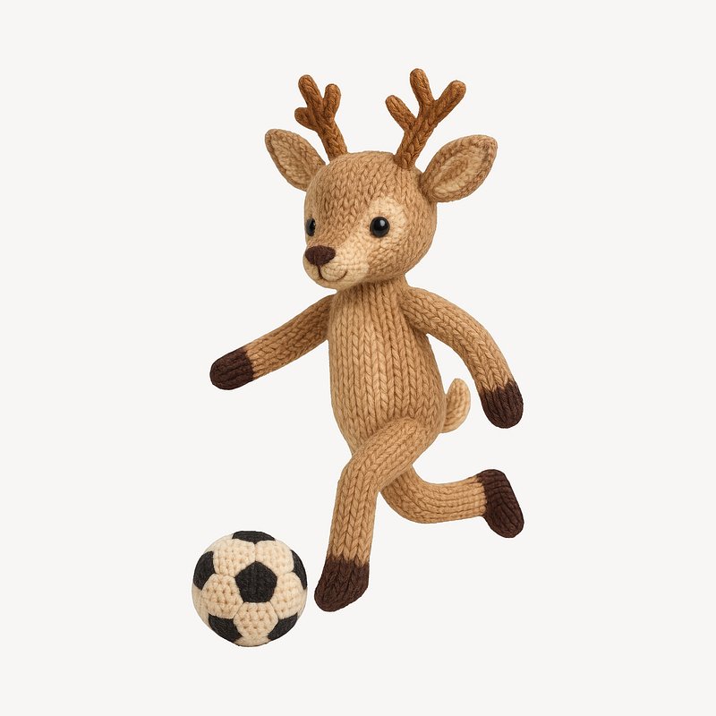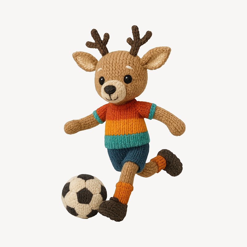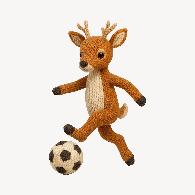 Cute knitted deer playing soccer. https://www.rawpixel.com/image/24531227/cute-knitted-deer-playing-soccerView license